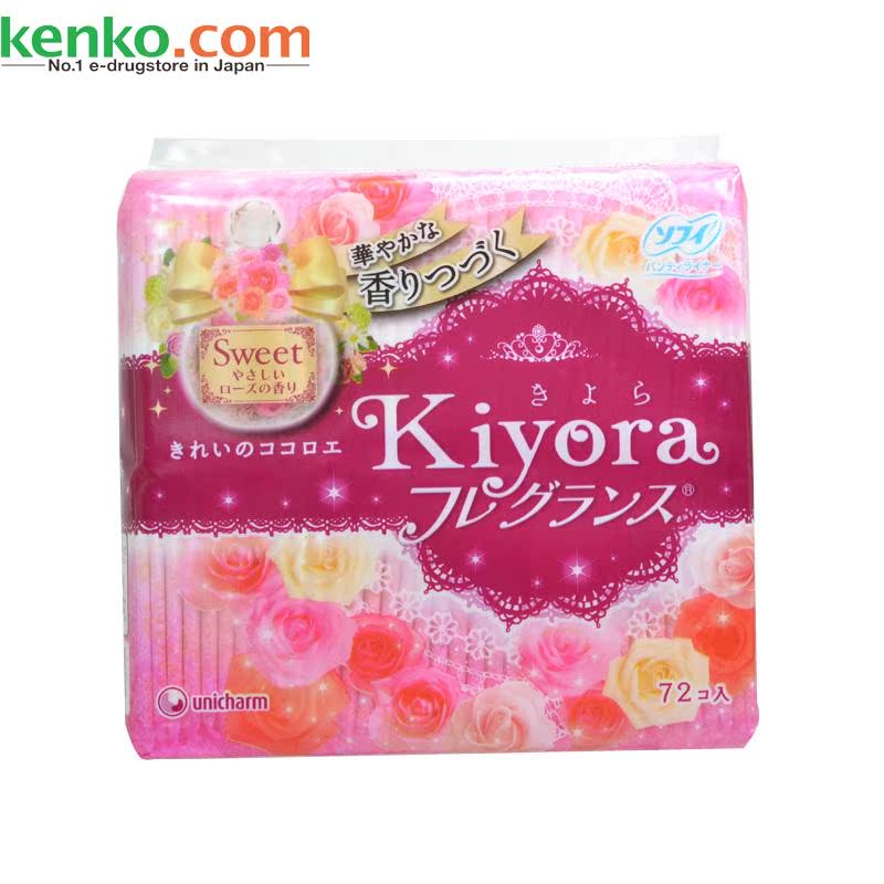 【日本直邮】尤妮佳KIYORA超薄透气卫生护垫72片 玫瑰香型