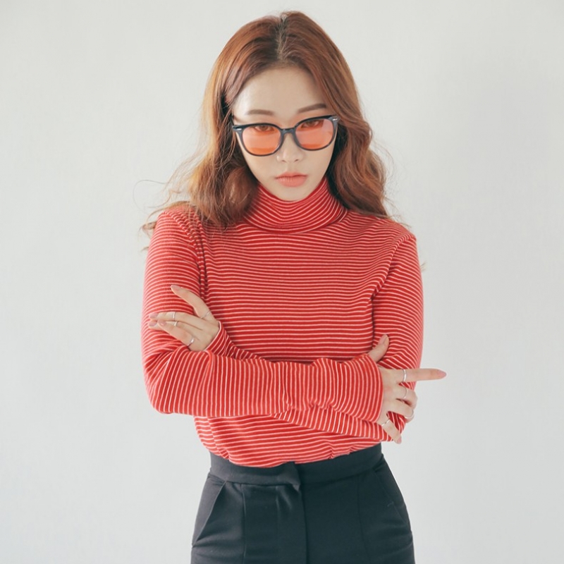 韩国stylenanda官方正品 精致细条纹高领T恤