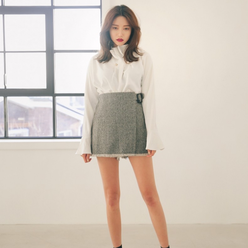 的热门产品韩国stylenanda官方正品 单排扣点缀交叠摆短裙