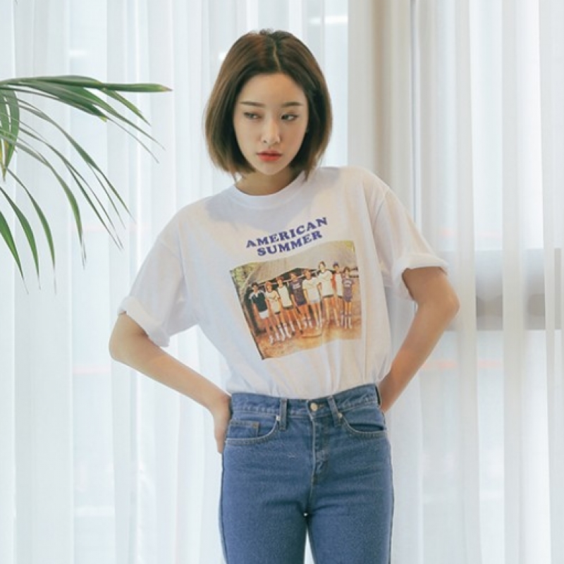 韩国stylenanda官方正品 休闲款图片印花短袖T恤