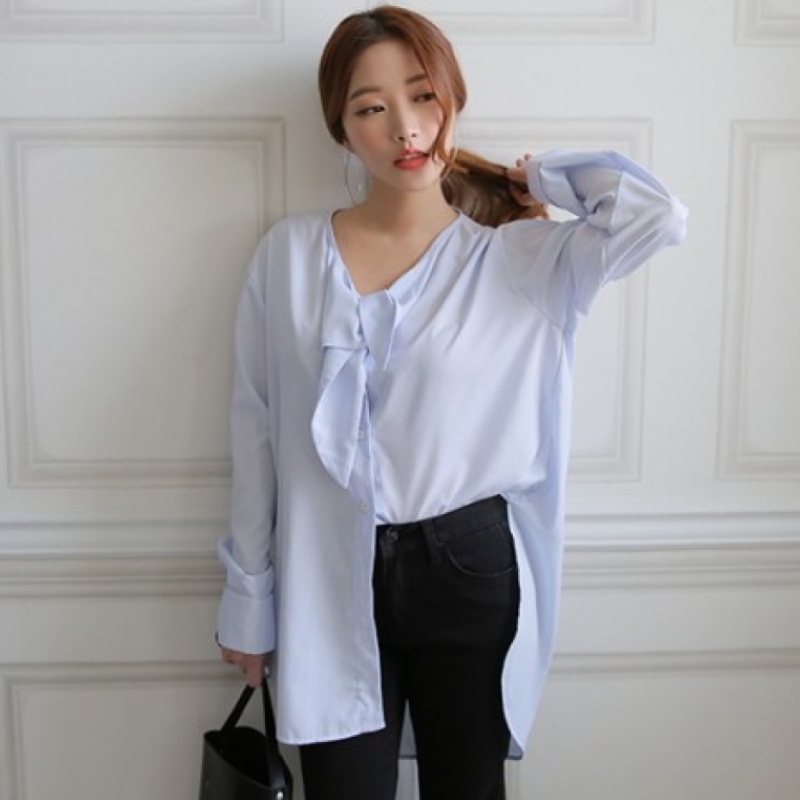 韩国stylenanda官方正品 束带领and高低开衩摆衬衣