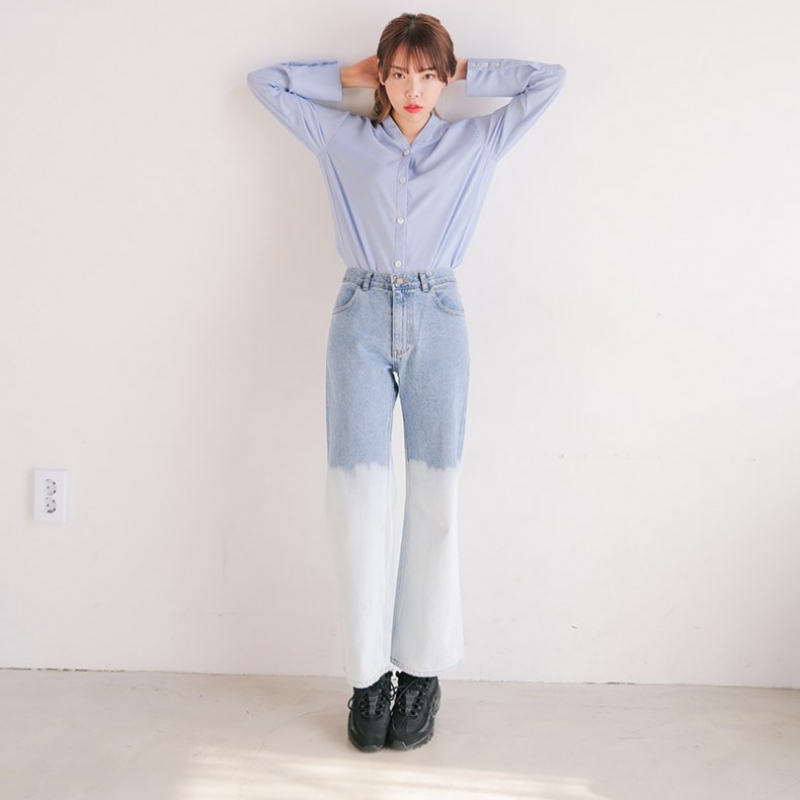 韩国stylenanda官方正品 直筒宽松漆白牛仔裤-牛仔蓝色