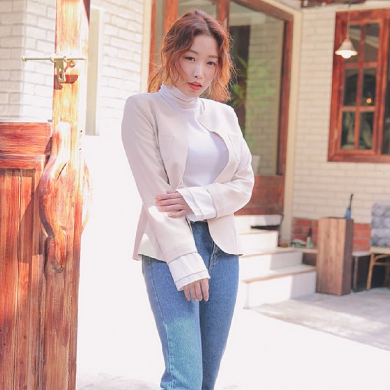 韩国stylenanda官方正品 配色袖口and系带收腰夹克-米色
