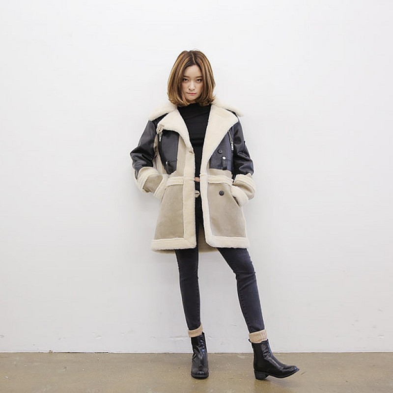 韩国stylenanda官方正品 时尚款配色拼接仿毛皮大衣-灰色