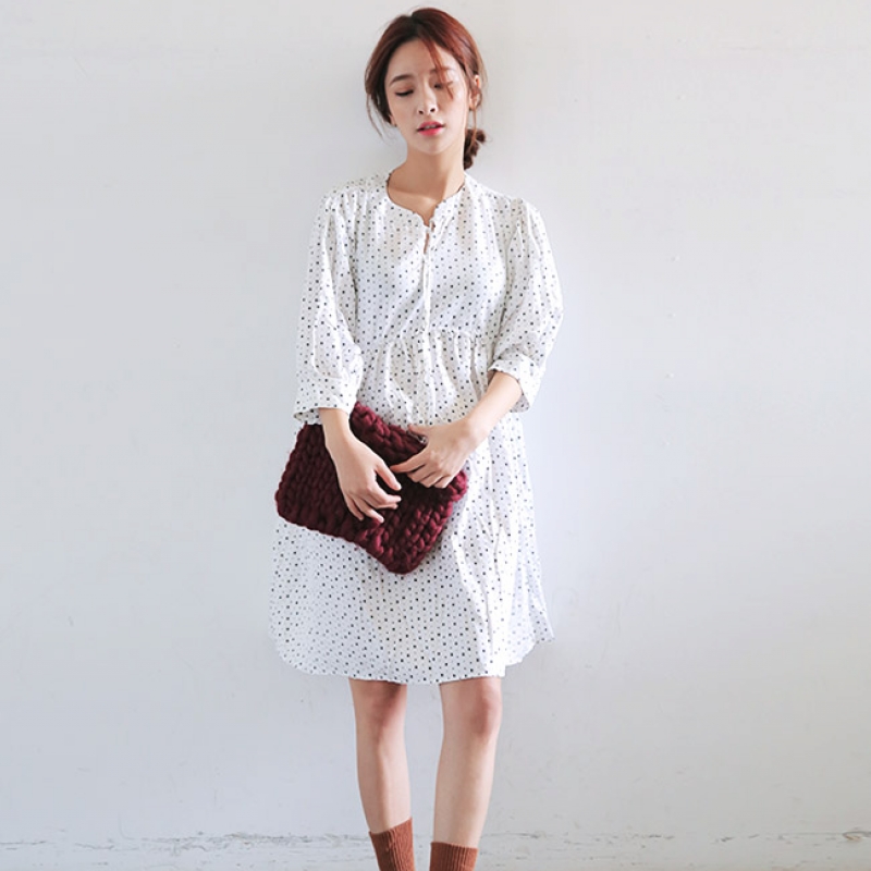 韩国stylenanda官方正品 可爱灯笼袖宽松连衣裙-白色