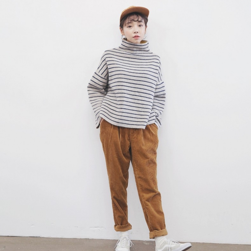 韩国stylenanda官方正品 时尚款男友风灯芯绒休闲裤-米色
