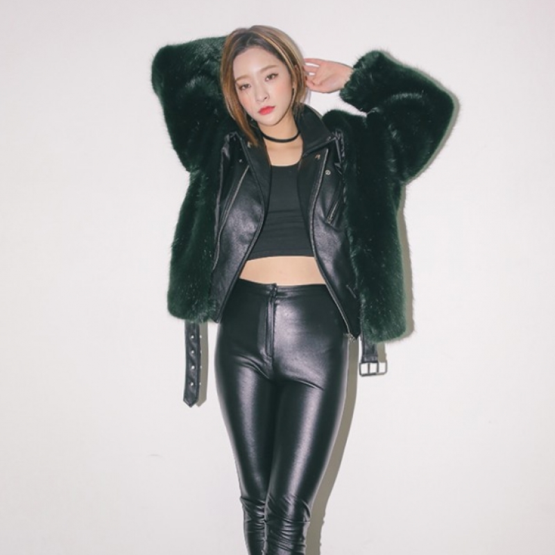 韩国stylenanda官方正品 个性款仿毛皮拼接骑士夹克-绿色
