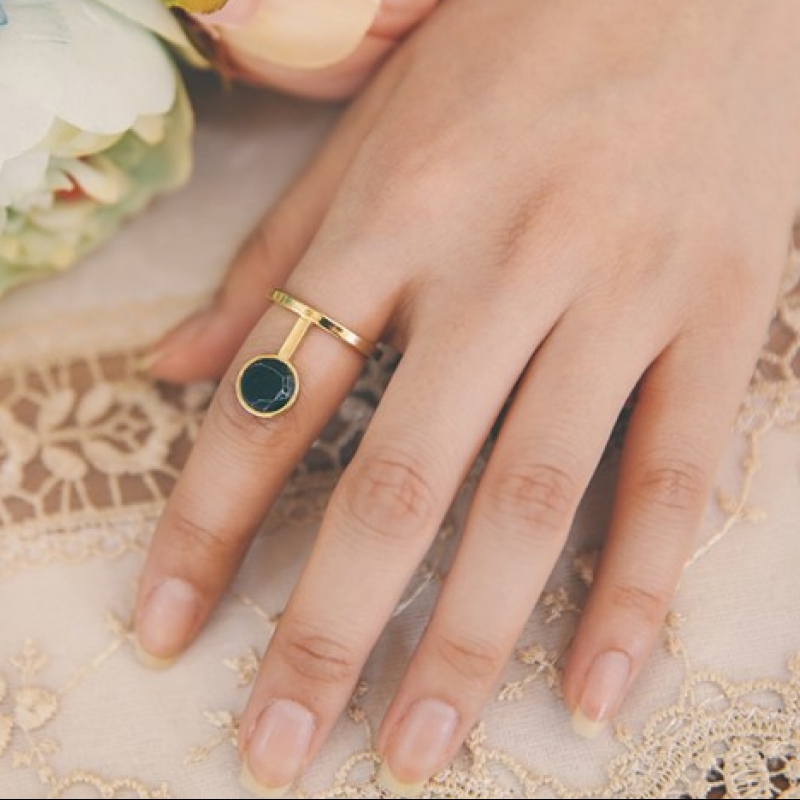 韩国stylenanda官方正品 个性拼接仿宝石金属戒指-金色