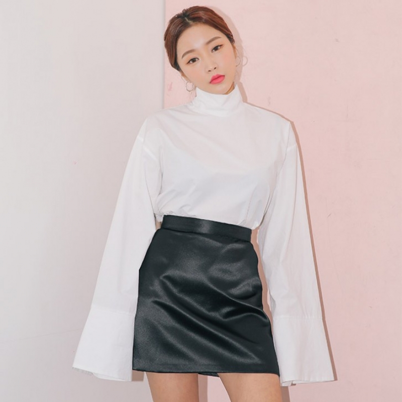 韩国stylenanda官方正品 开衩高低摆露肤立领衬衣