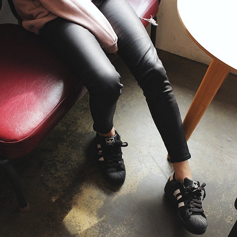 韩国stylenanda官方正品 时尚款光泽修身小脚裤-黑色