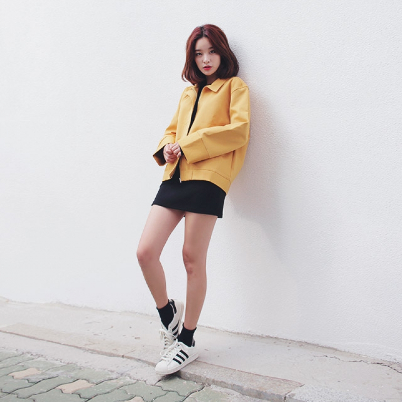 韩国stylenanda官方正品 CREAM ATTACK刺绣纯色翻领外套-黄色