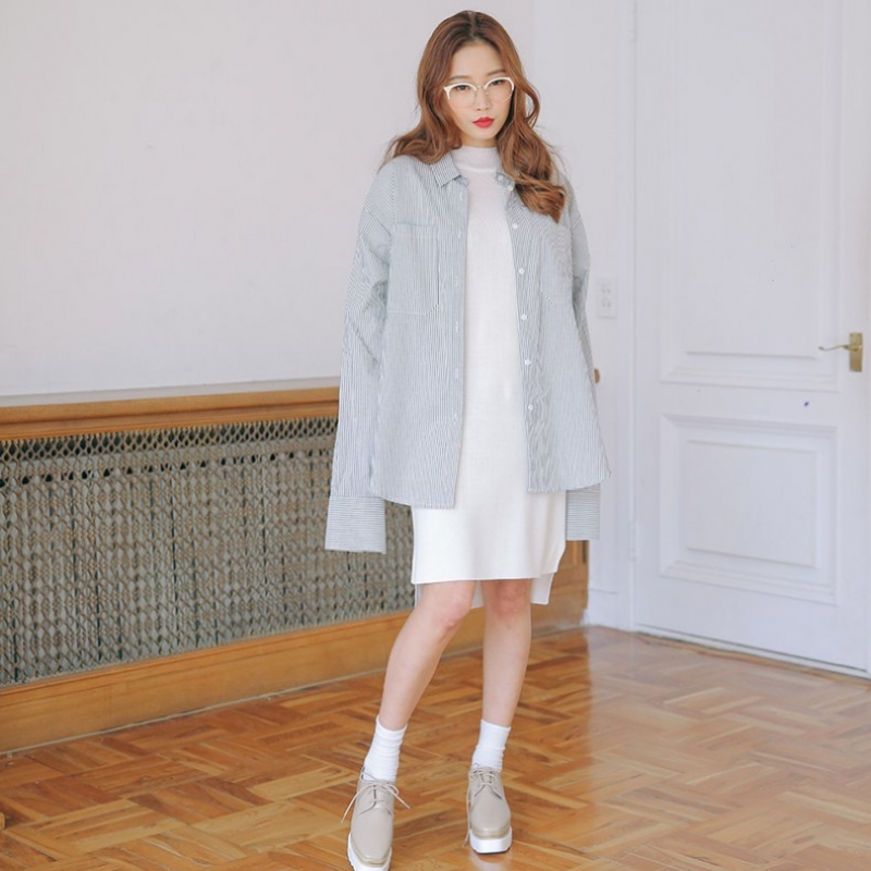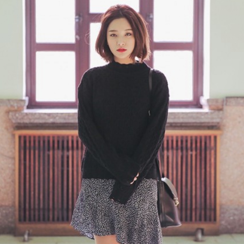 韩国stylenanda官方正品 高低开衩摆设计微立领长款针织衫
