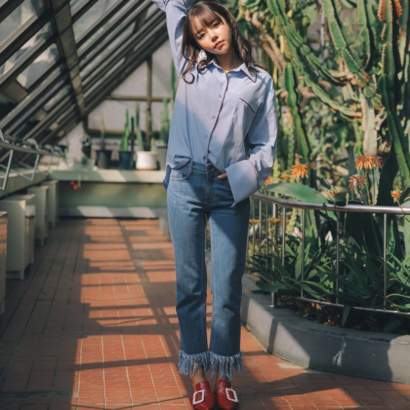 韩国stylenanda官方正品 流苏点缀牛仔裤-蓝色