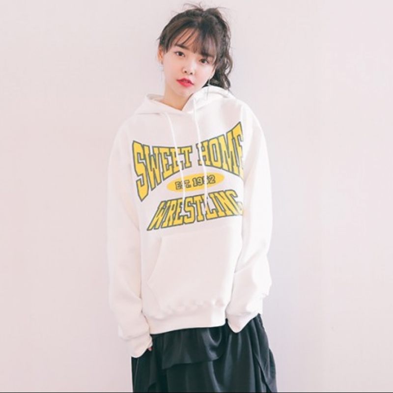 韩国stylenanda官方正品 休闲字母印花连帽卫衣-象牙色