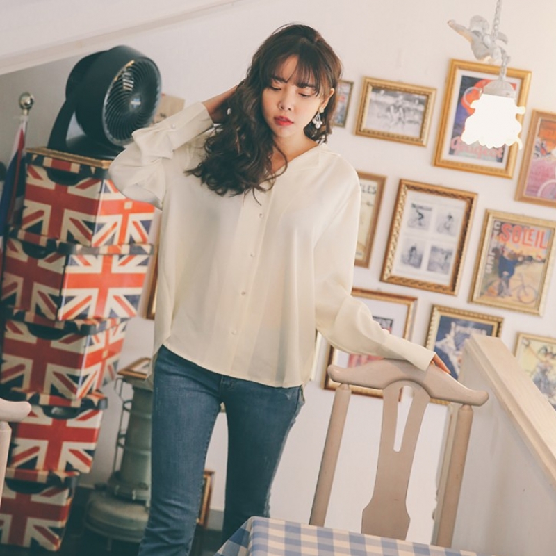 韩国stylenanda官方正品 小巧纽扣翻领衬衣