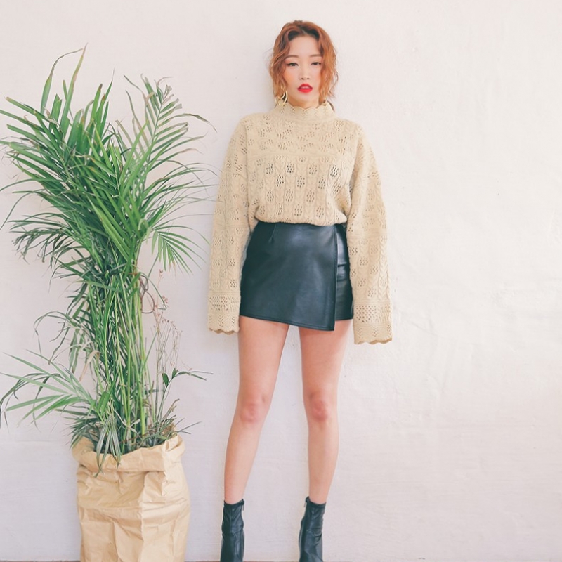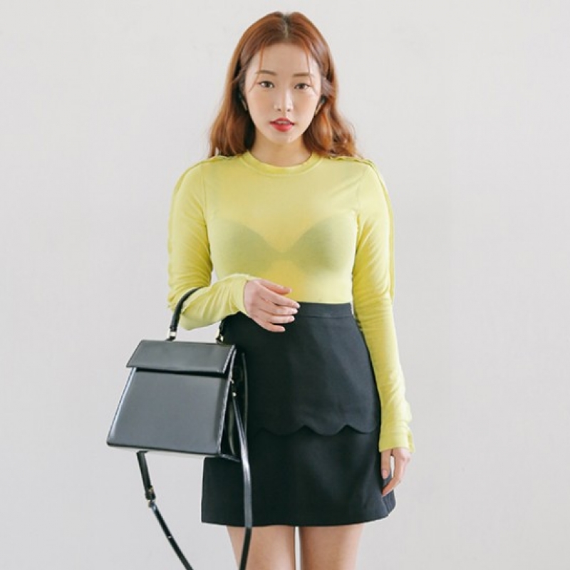 韩国stylenanda官方正品 优雅镂空设计波浪边针织衫