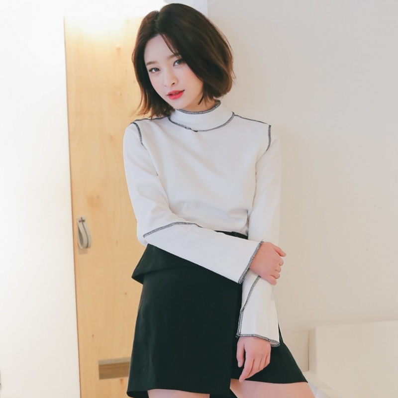 韩国stylenanda官方正品 性感几何露肤车线点缀衬衣-象牙色