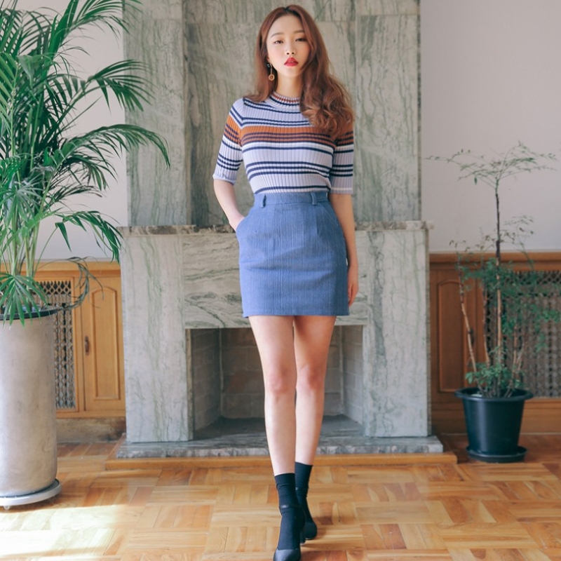 韩国stylenanda官方正品 简约H字牛仔迷你裙