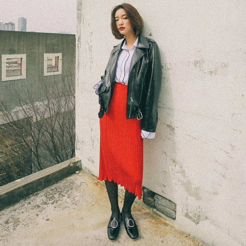 韩国stylenanda官方正品 浪漫纯色风琴褶半身长裙