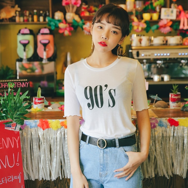 韩国stylenanda官方正品 数字印花波浪边短袖T恤