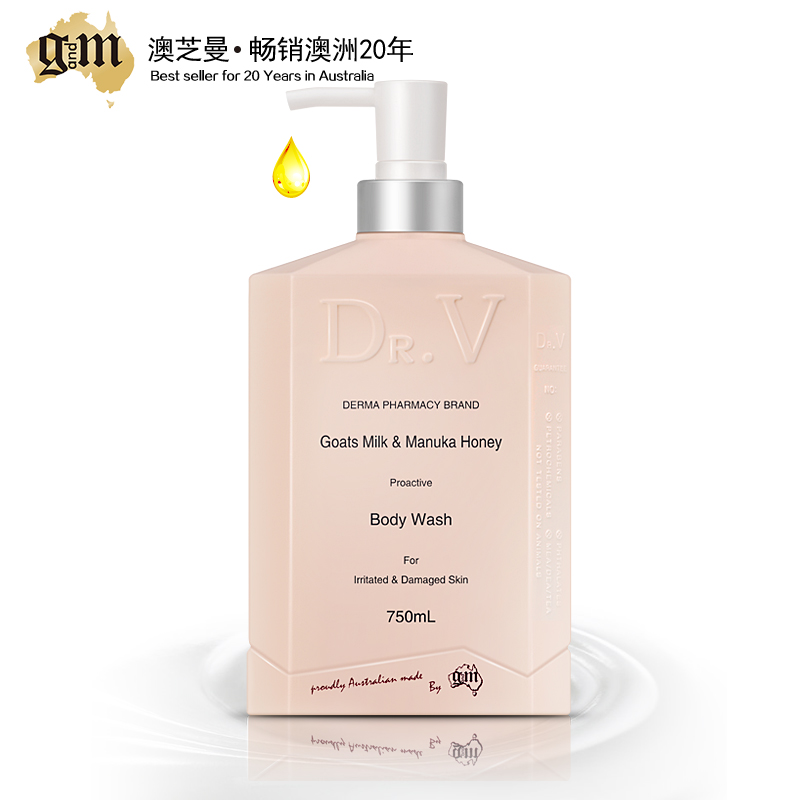 gm澳芝曼Dr.V天然草本沐浴乳750ml 补水滋润保湿无泡沫澳洲沐浴露