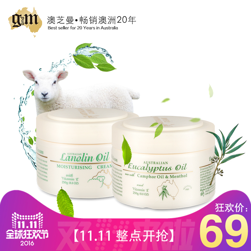 gm澳芝曼绵羊油250g+桉树油250g 深度补水舒缓止痒保湿霜澳洲原装