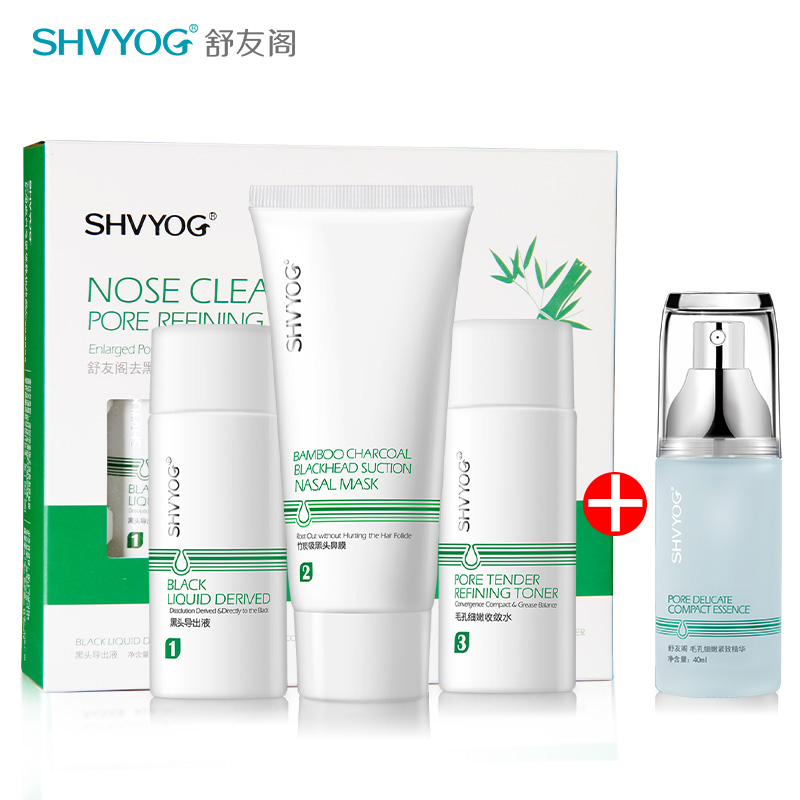 SHVYOG/舒友阁去黑头收毛孔套装4件套去黑头祛粉刺鼻贴毛孔精华液