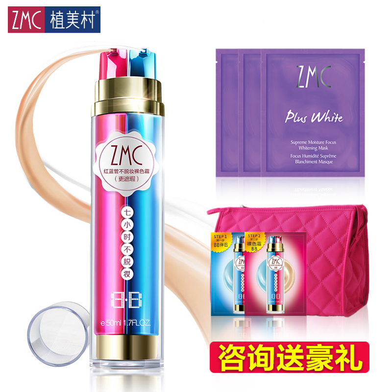 的热门产品植美村BB霜红蓝管7小时不脱妆裸色霜遮瑕强美白隔离保湿专柜正品