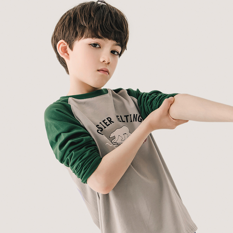 纯一良品童装长袖T恤男童撞色插肩袖打底衫中小童上衣莱卡棉宝宝