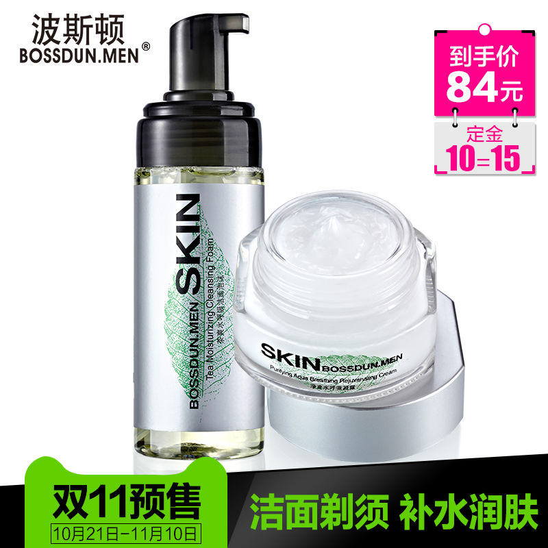 【11-11预售】波斯顿茶爽净白凝霜洁面泡沫男士补水控油护肤套装