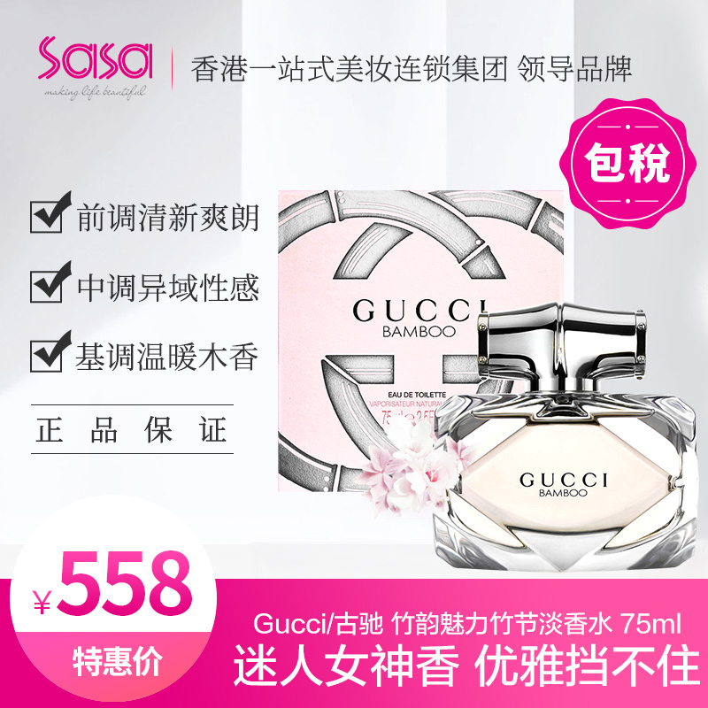 化妆品保质期:36个月 是否为特殊用途化妆品:否 限期使用日期范围:2019-06-01至2019-07-01 颜色分类:淡粉色 净含量:75mL 香味:柑橘 百合 檀香 香调:花香调 规格类型:正常规格 品牌:Gucci/古奇 Gucci/古琦:竹节淡香精 产地:英国 查看全文