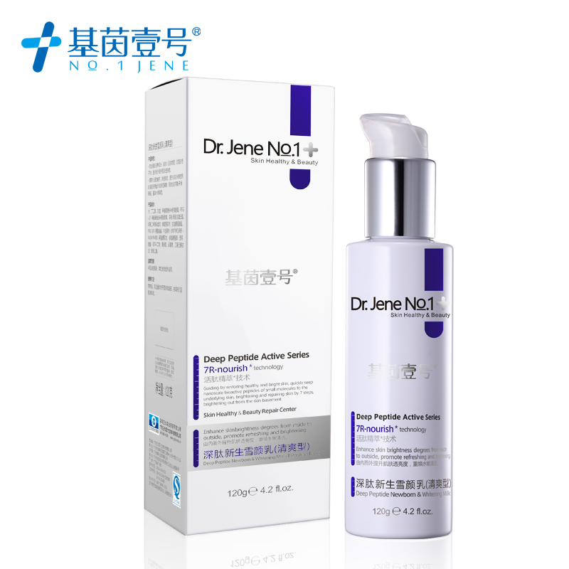 规格类型:正常规格 洁面分类:洁面乳 产地:中国 适合肤质:任何肤质 上市时间:2015年 月份:5月 起泡程度:低泡 化妆品净含量:120g 品牌:NO.1 JENE/基茵壹号 功效:美白.补水.保湿.控油.去角质.收缩毛孔.深层清洁.滋润.清洁毛孔.美白滋润.舒缓净化肌肤 洁面单品:深肽新颜雪肌洁面乳 特殊用途化妆品批准文号:卫妆准字号:29-XK-2546号 查看全文
