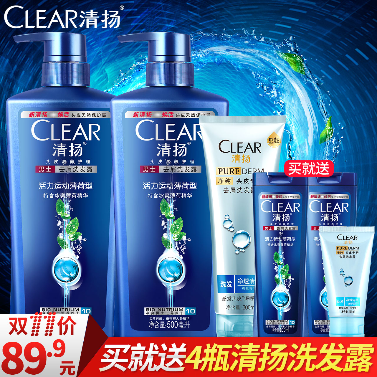的热门产品Clear清扬男士洗发水露乳活力运动薄荷去屑控油正品套装400ml*3