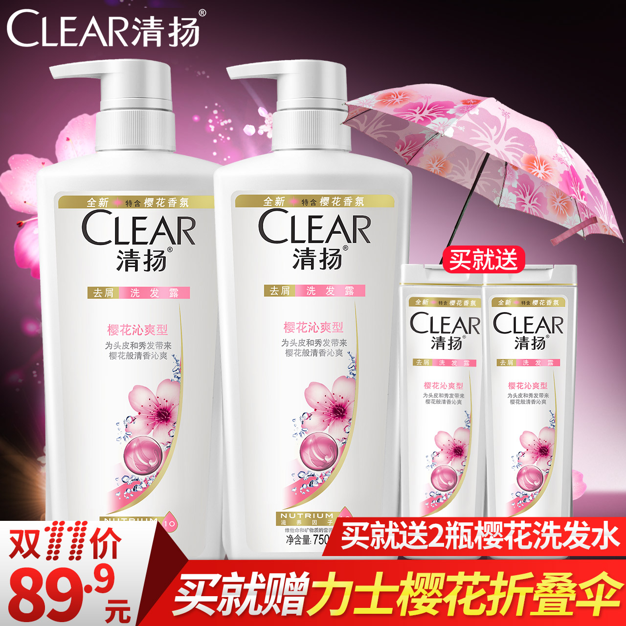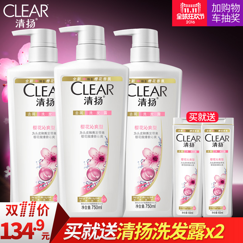 【双11】清扬洗发水/露樱花沁爽男女士去屑留香正品套装750ml*3