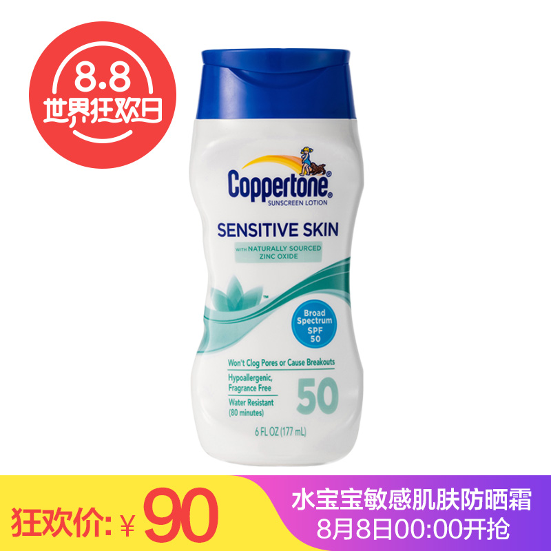 美国coppertone水宝宝敏感肌防晒霜spf50温和防水全身隔离177ml