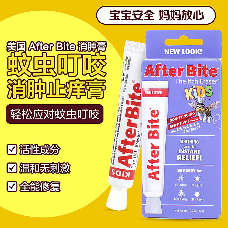 美国After Bite婴幼儿宝宝蚊虫叮咬止痒膏消肿膏驱蚊消红肿20g