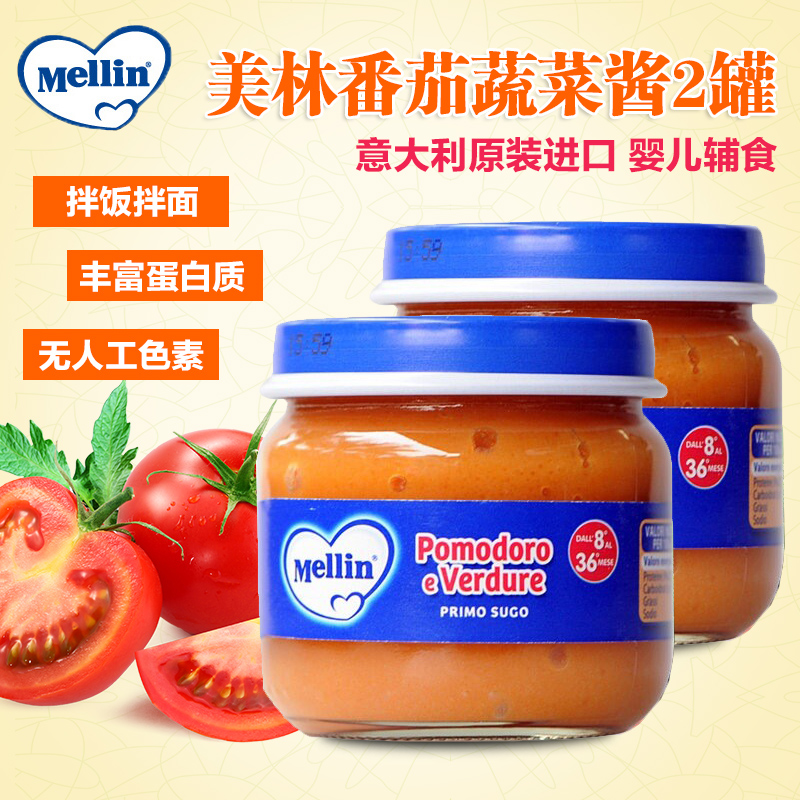 意大利进口Mellin/美林宝宝番茄西红柿蔬菜拌面酱8个月以上*2罐