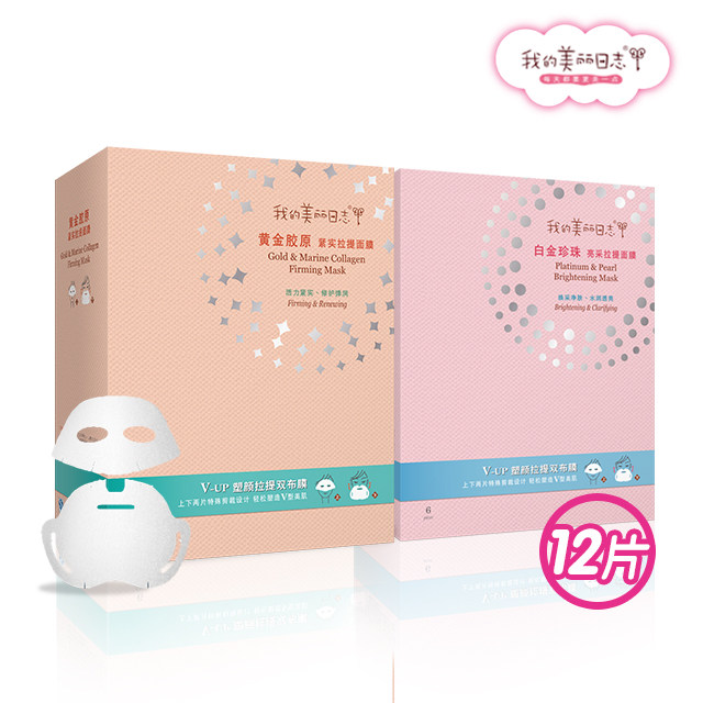 我的美丽日志白金珍珠黄金胶原提拉焕白面膜套装12片 补水保湿