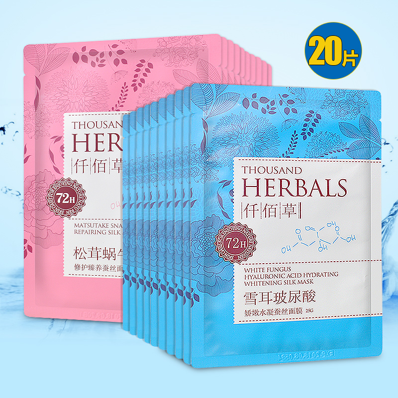 仟佰草面膜专柜正品蚕丝松茸蜗牛舒缓修护玻尿酸保湿补水面膜20片