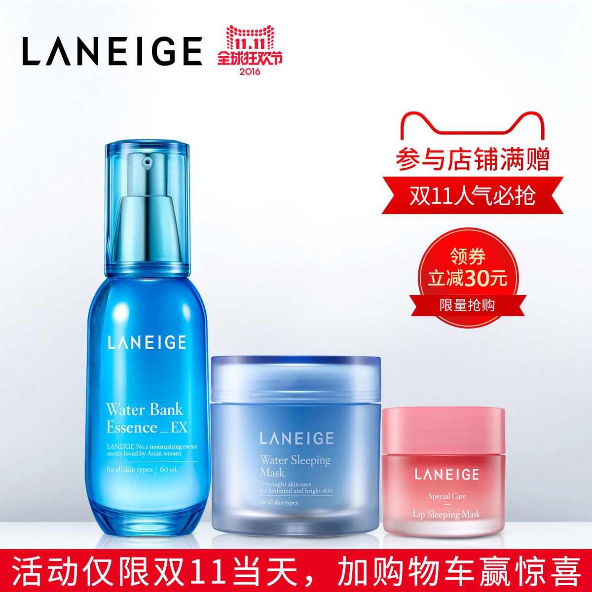 【11.11专享】兰芝唇膜面膜新水酷精华套装 补水保湿 免洗修护