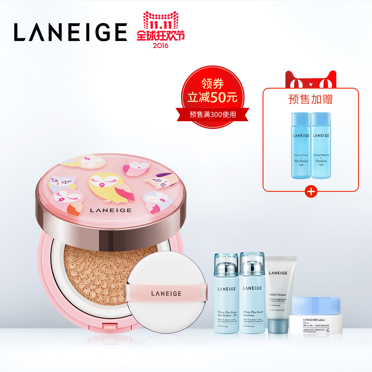 【新品首发】兰芝限量版猫头鹰气垫BB霜 赠替换芯 遮瑕 裸妆防晒