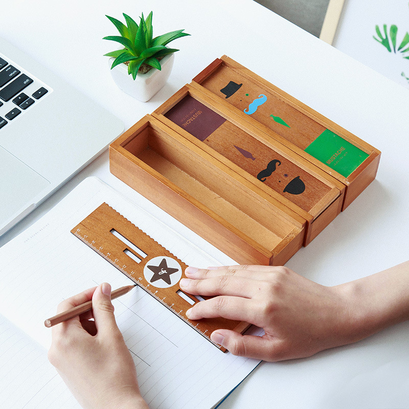韩国创意多功能复古文具盒大容量木质铅笔盒简约男女学生文具用品