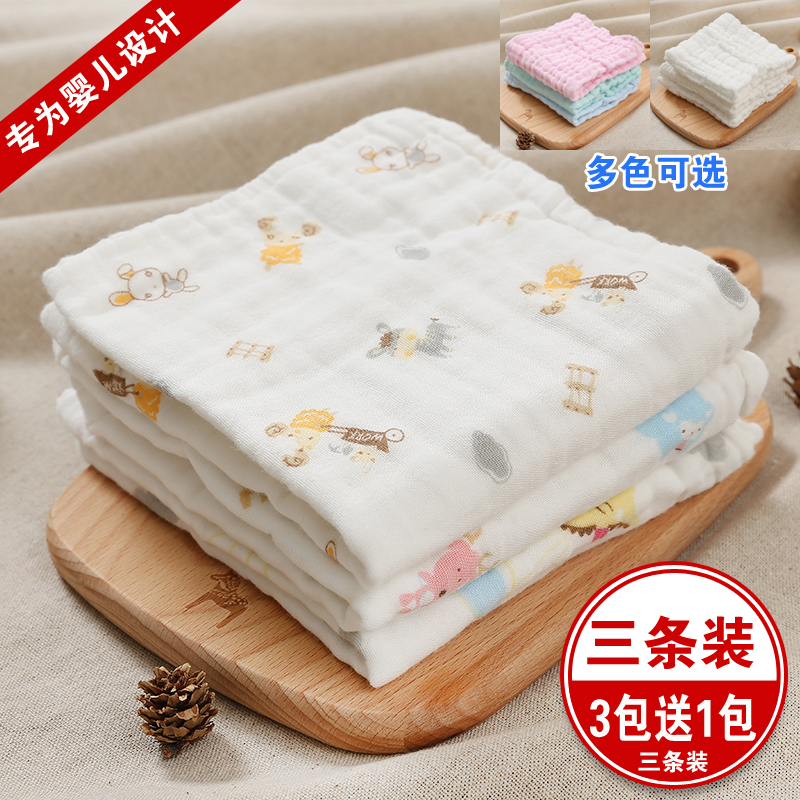 婴儿毛巾纯棉纱布口水巾新生儿用品喂奶巾 宝宝洗脸小方巾3条装