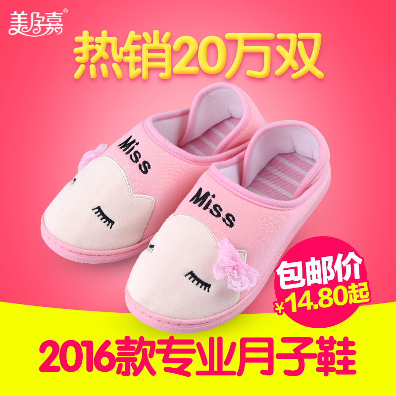 美孕嘉秋冬月子鞋加厚保暖孕妇鞋产妇防滑全棉拖鞋包跟软底月子鞋