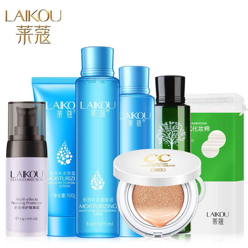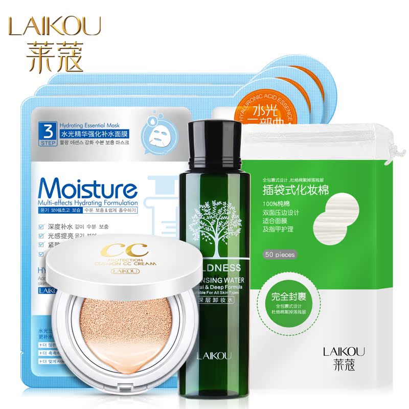 【福袋】莱蔻秋冬护肤6套装气垫CC霜卸妆水卸妆棉三部曲面膜3片