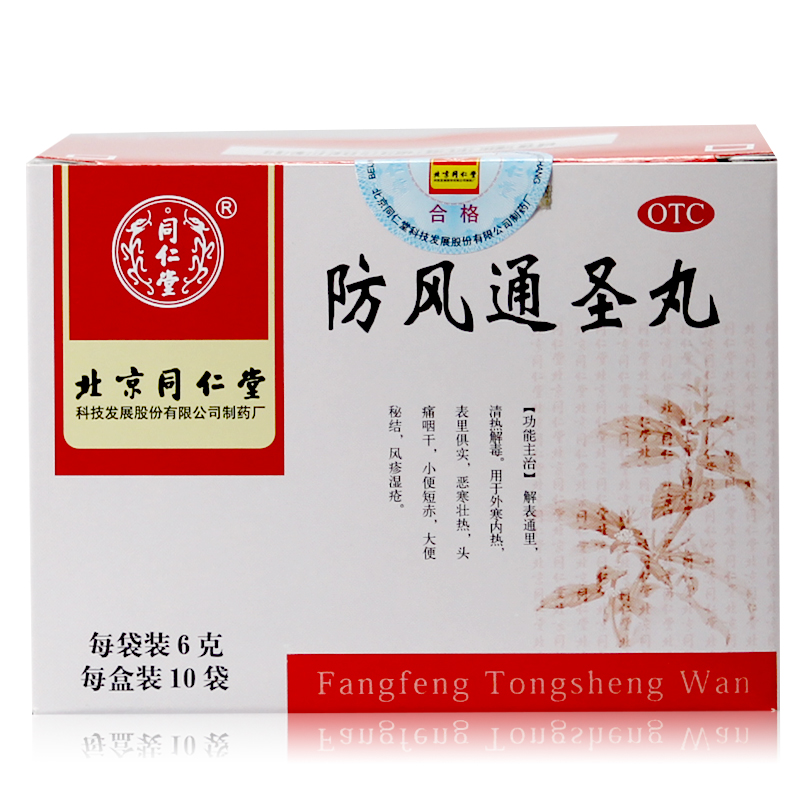 适用人群:不限 品牌:同仁堂 药品分类:非处方药 产品剂型:丸剂 用法:口服 类别:中药 规格:6g*10袋/盒 生产企业:北京同仁堂科技发展股份有限公司制药厂 有效期:48个月 症状:发热 疾病:风热感冒 使用剂量:一次1袋,一日2次。 药品名称:防风通圣丸 药品通用名:防风通圣丸 批准文号:国药准字Z11020246 查看全文