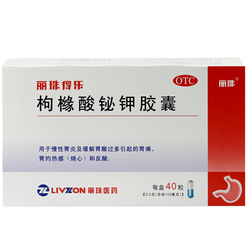 丽珠得乐 枸橼酸铋钾胶囊 40粒 胃药 慢性胃炎 胃酸多 胃痛胃疼