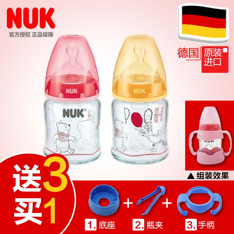 NUK 宽口径耐高温玻璃彩色奶瓶120ML 1号 硅胶 德国原装进口