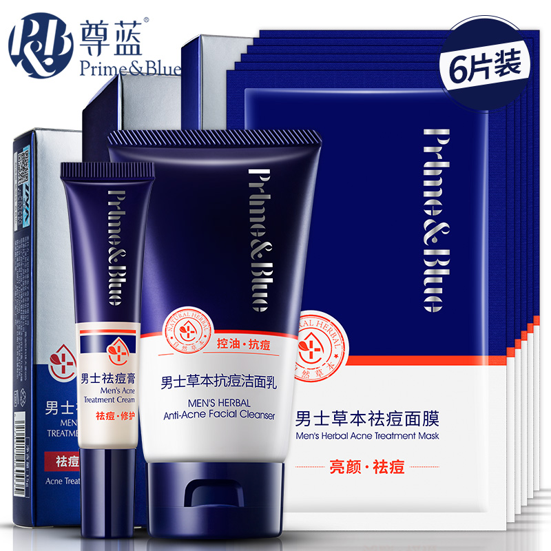 尊蓝男士草本祛痘套装祛痘痘青春痘祛粉刺淡化痘印修护凹洞护肤品