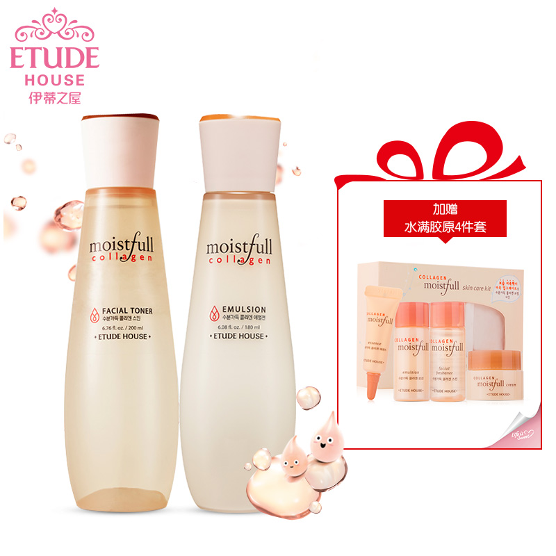 的热门产品ETUDE HOUSE伊蒂之屋 水满胶原粉嫩生机雪润莹白水乳套装保湿补水